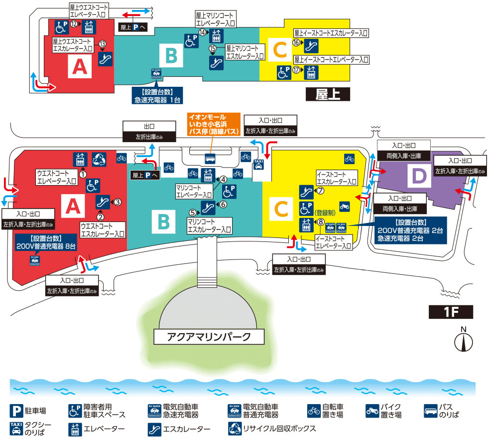 ※イオンモール駐車場混雑時にはアクアマリンパーク共用駐車場をご利用ください。 ※施錠される駐車場もありますのでご注意ください。